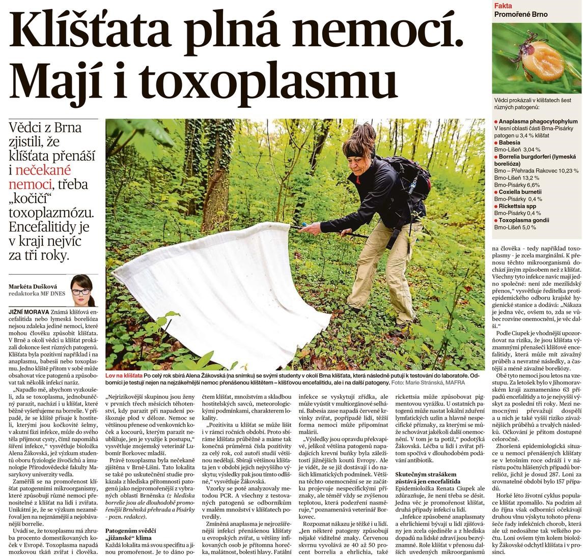 While it is generally known that ticks carry tick-borne encephalitis and Lyme disease, these are far from the only diseases that ticks can cause in humans. In Brno and its surroundings, scientists have identified six different pathogens in ticks, including anaplasma, babesia and toxoplasma. One tick can contain several pathogens, and thus cause several infections at once.